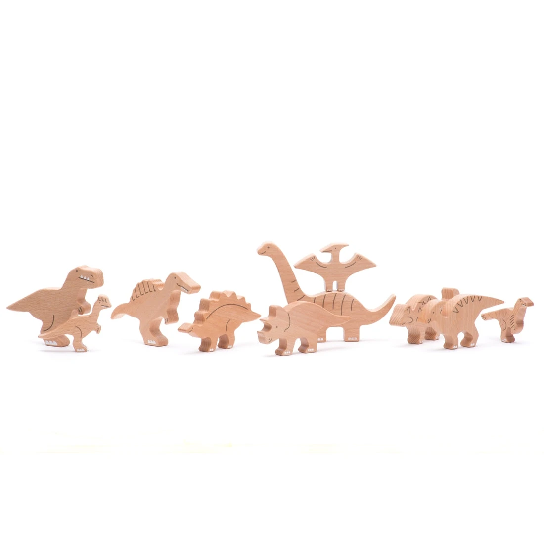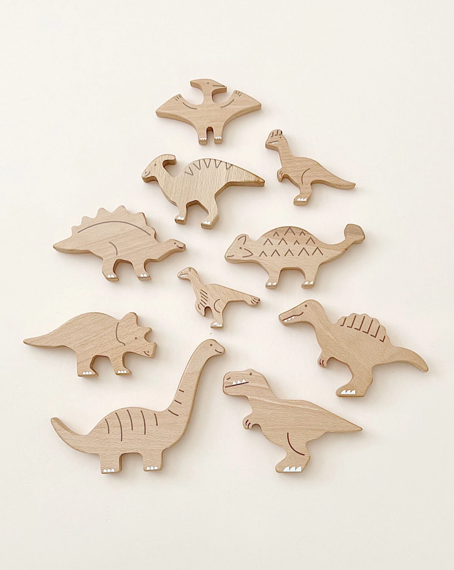 Handmade in Poland by Bajo. This set contains 10 dinosaurs, making it a great gift for aspiring little paleontologists.