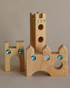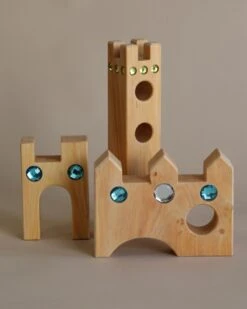 The Fairytale Castle set features a collection of sturdy wooden blocks, arches, and towers that can be assembled in endless combinations. With its vibrant colors and intricate detailing, this castle captures the essence of a whimsical fairytale setting, ready to be brought to life by your child’s imagination.