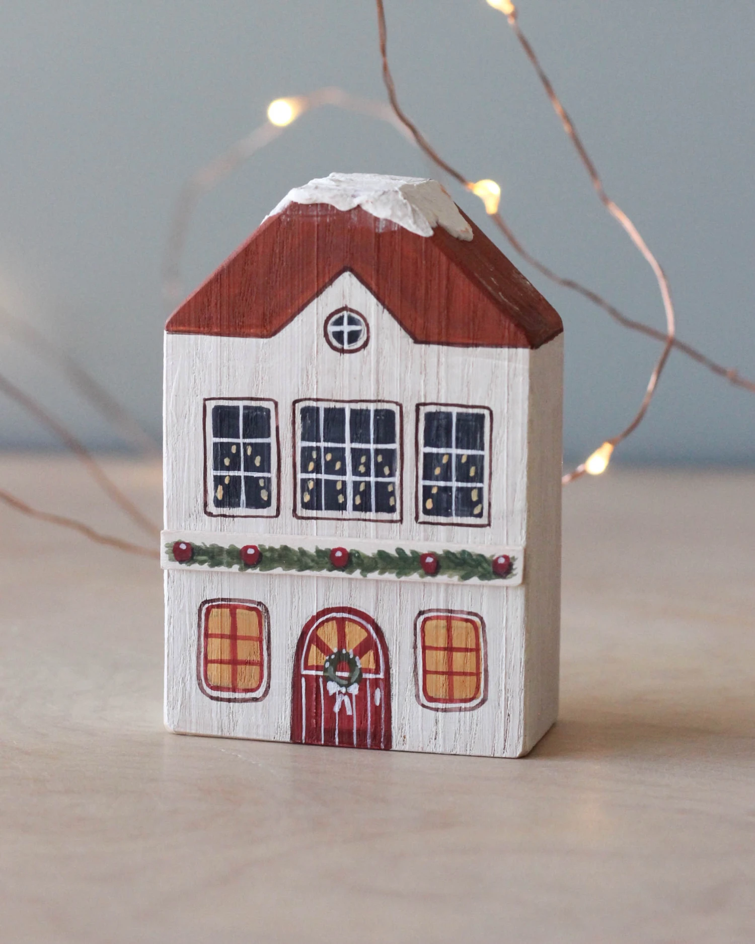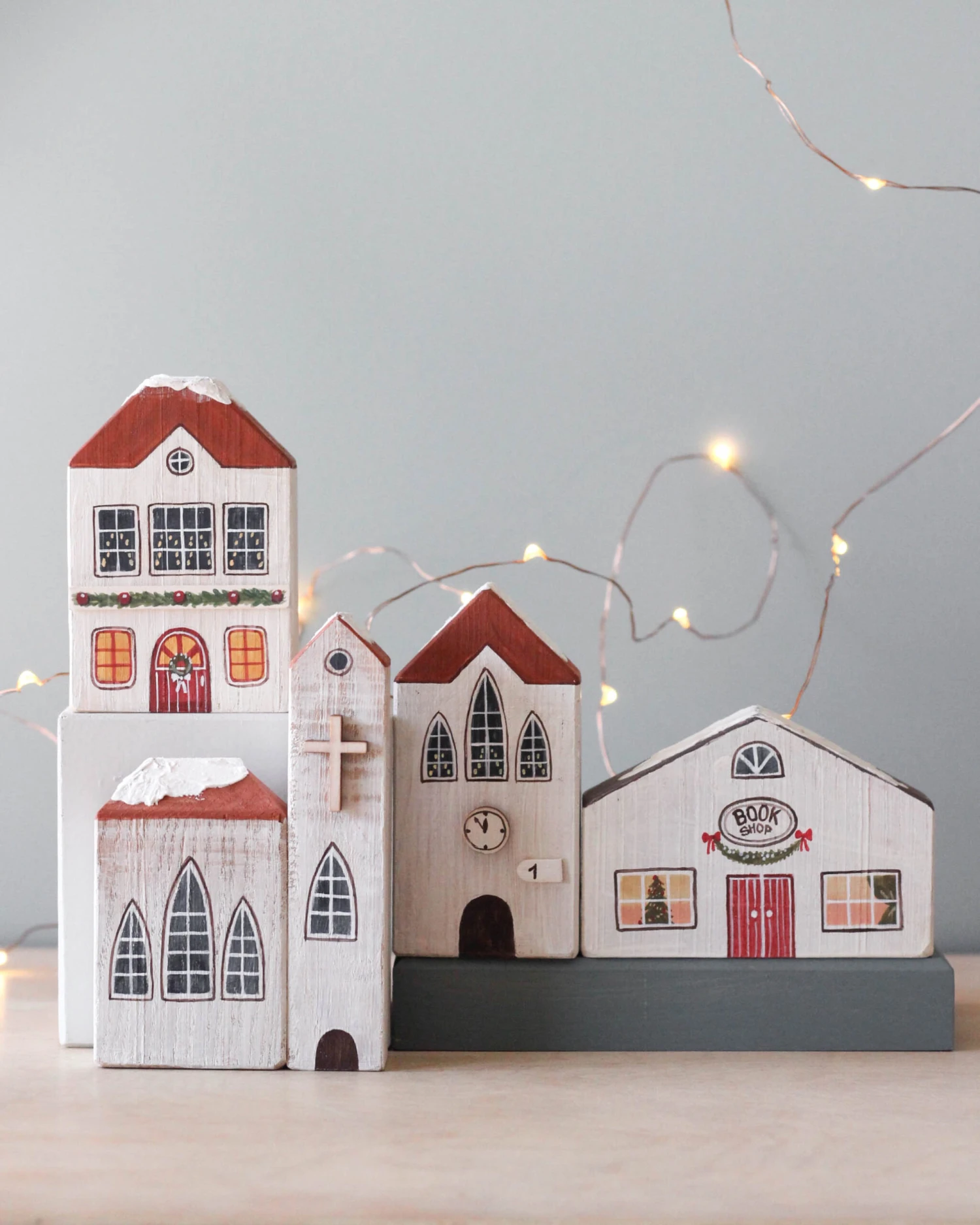 Entirely handmade and handprinted Christmas village.