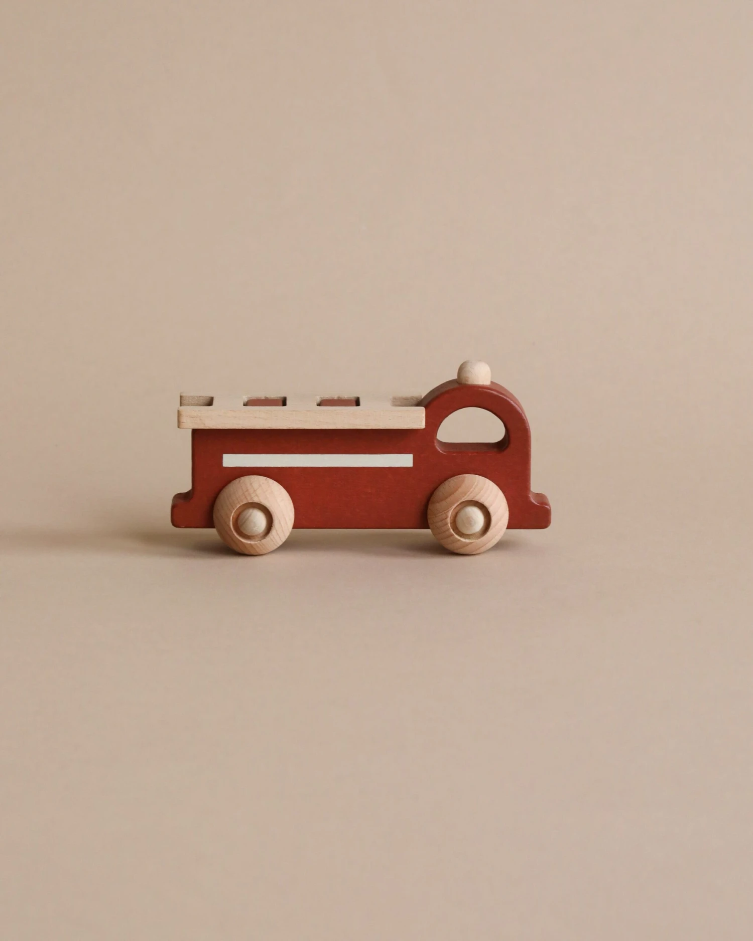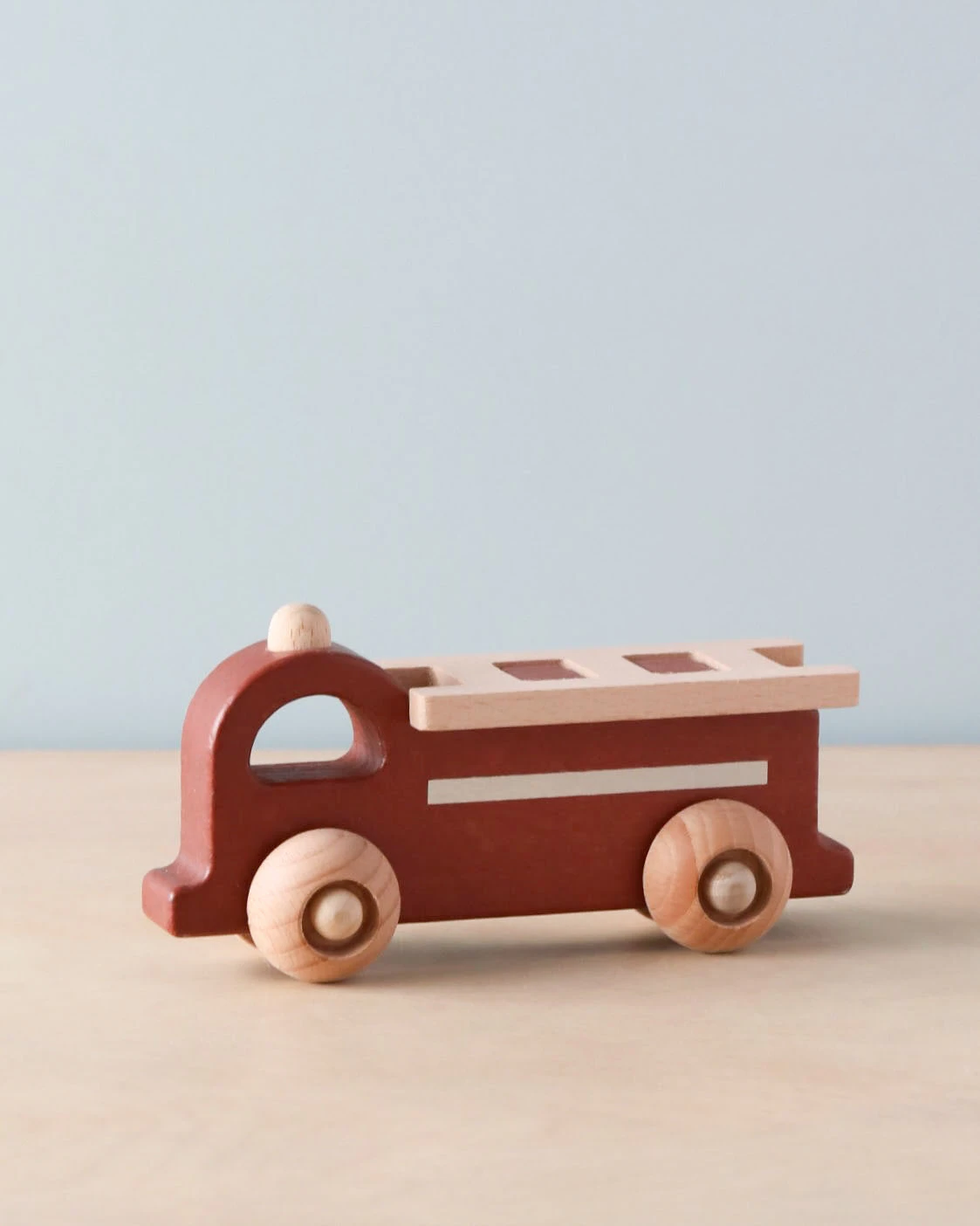 Wooden fire engine with a removable ladder on top.