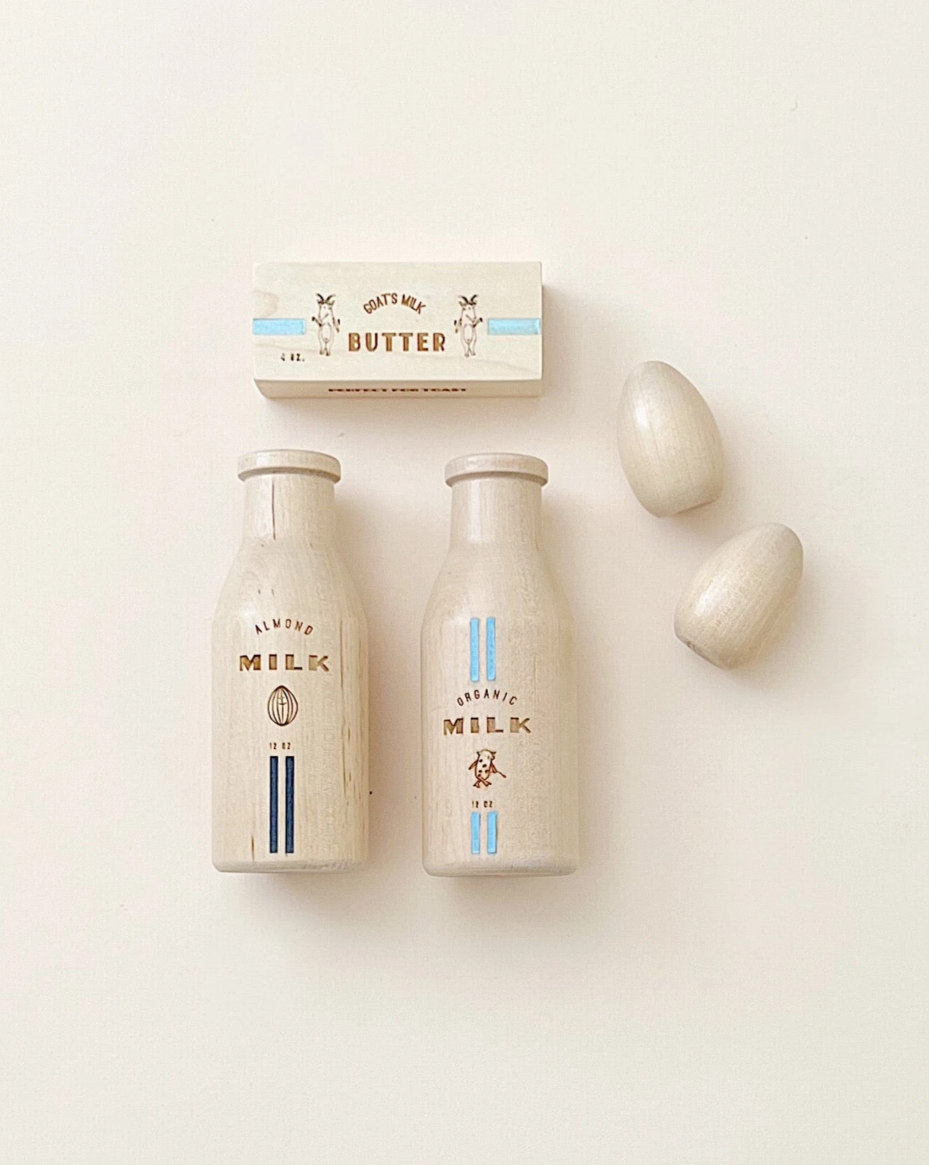 Refrigerator staples that are so cute you might just want to leave them out! Each set includes Organic Milk, Almond Milk, Goat’s Milk Butter, and 2 Free-Range Eggs and comes in a beautiful cotton drawstring bag.