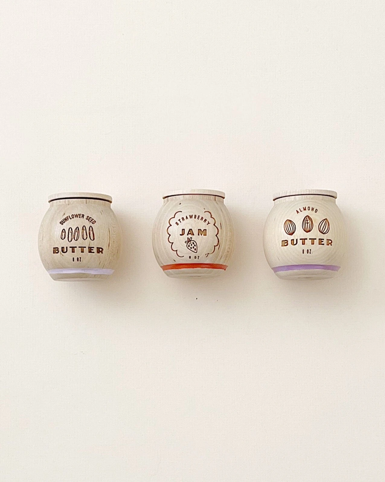 No peanuts? No problem! With our AB&J set, we’ve got your alternative butter and jam set needs covered. Jars open for even more interactive fun. Each set includes Sunflower Seed Butter, Almond Butter, and all-natural Strawberry Jam and comes in a beautiful cotton drawstring bag.