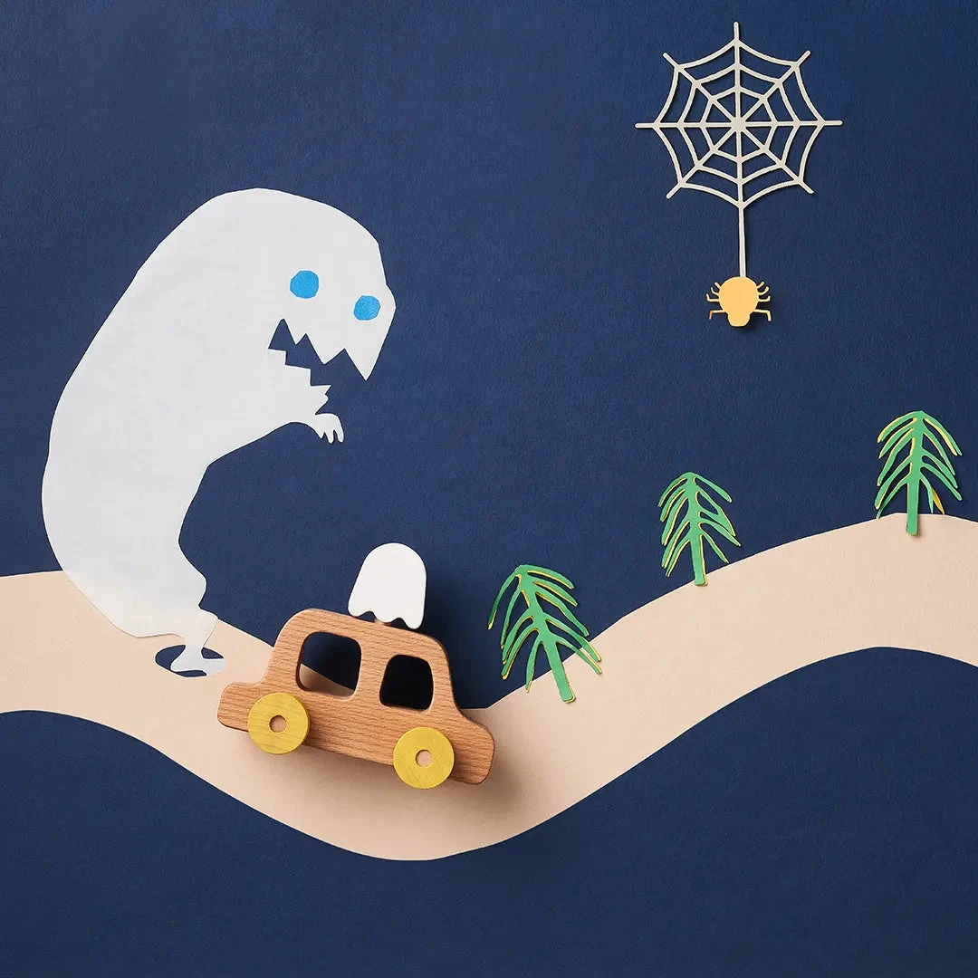 Wooden car with 5 emotion objects