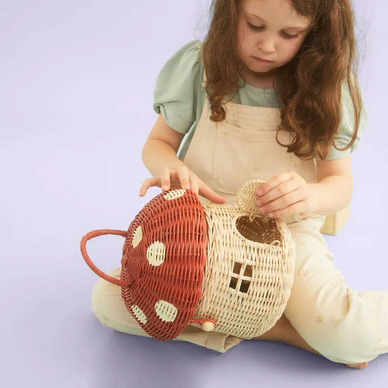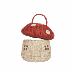 Meet the Mushroom Basket – a magical home for forest dwelling creatures, little animals, fairies, gnomes – and so much more. With a generous size, adjustable handle, and a little door (which opens and shuts), kiddos can open the Mushroom top and carry teeny treasures with them wherever they go.