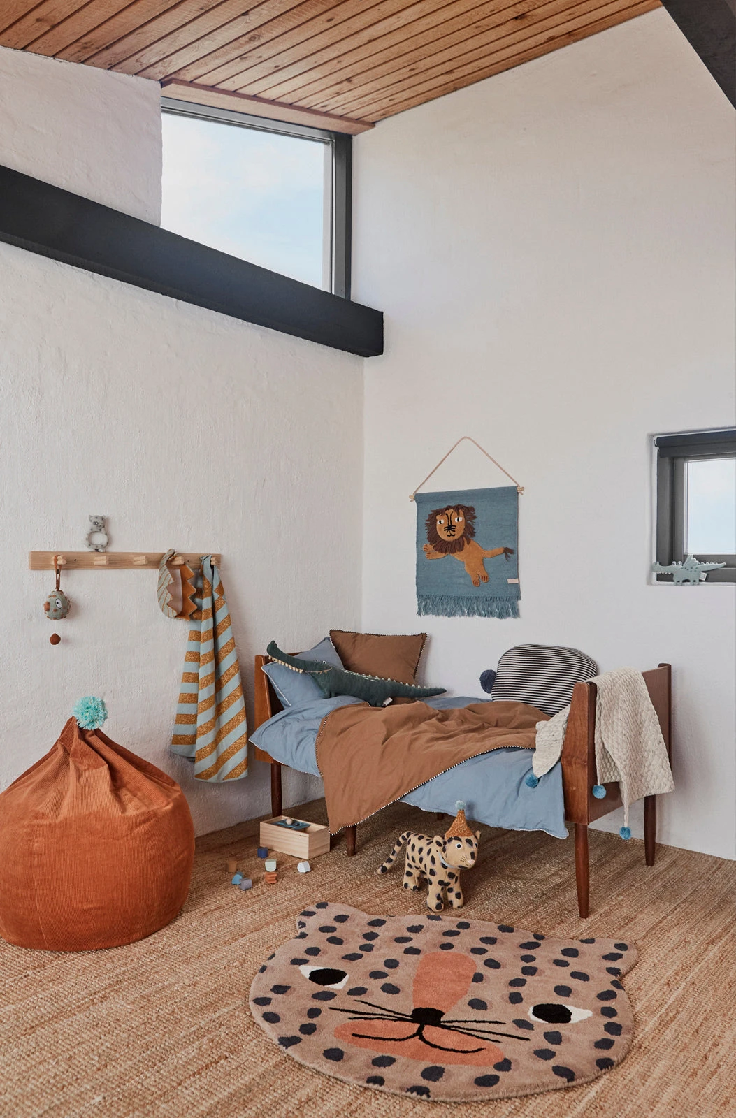 The wall rug with the lion will be a hit in all children’s rooms. The decorative rug is suitable for hanging alone or with other rugs in the series.
