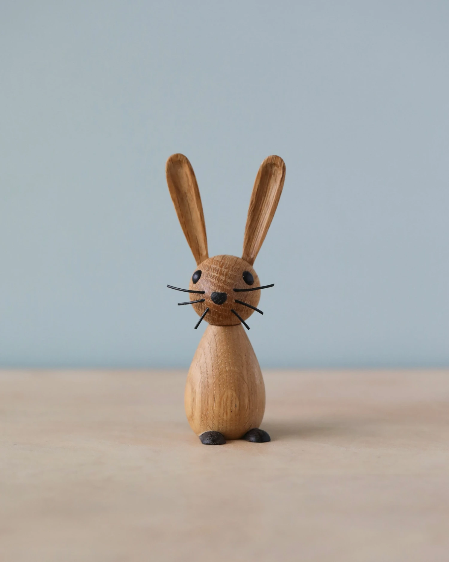 Mini Jumper is a cute hare that brings a spring vibe into your home – all year round. This little version of our big hare, Jumper, has a gentle and curious expression and you can turn his head so that he can look around. Mini Jumper is handmade of pure oak and with details in smoked oak.