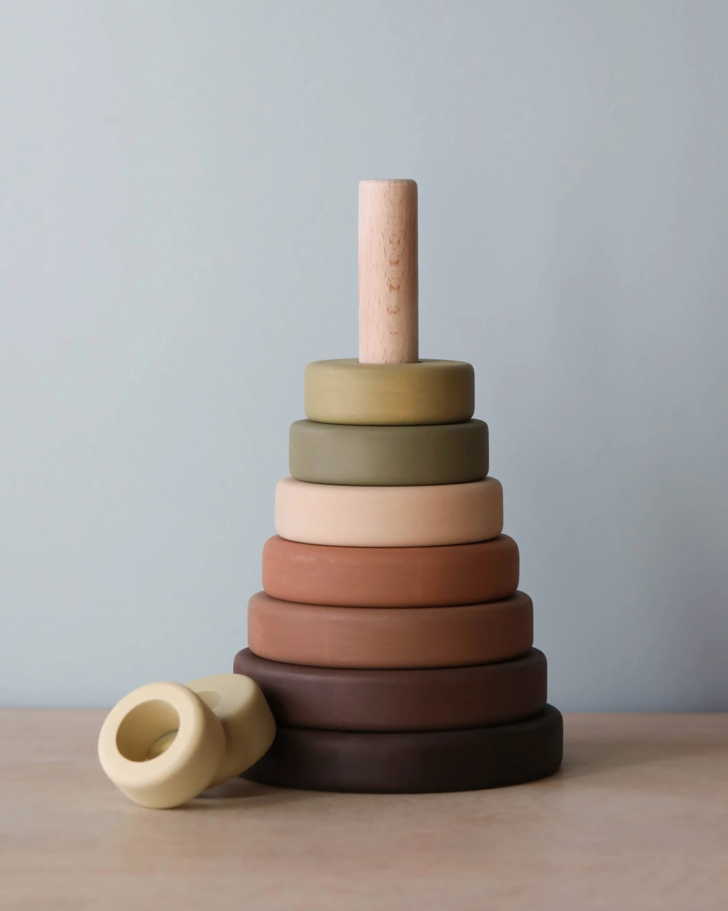 Handmade by Sabo Concept in Ukraine and painted with non-toxic, water-based paint. This stacking toy is great for hand-eye coordination.