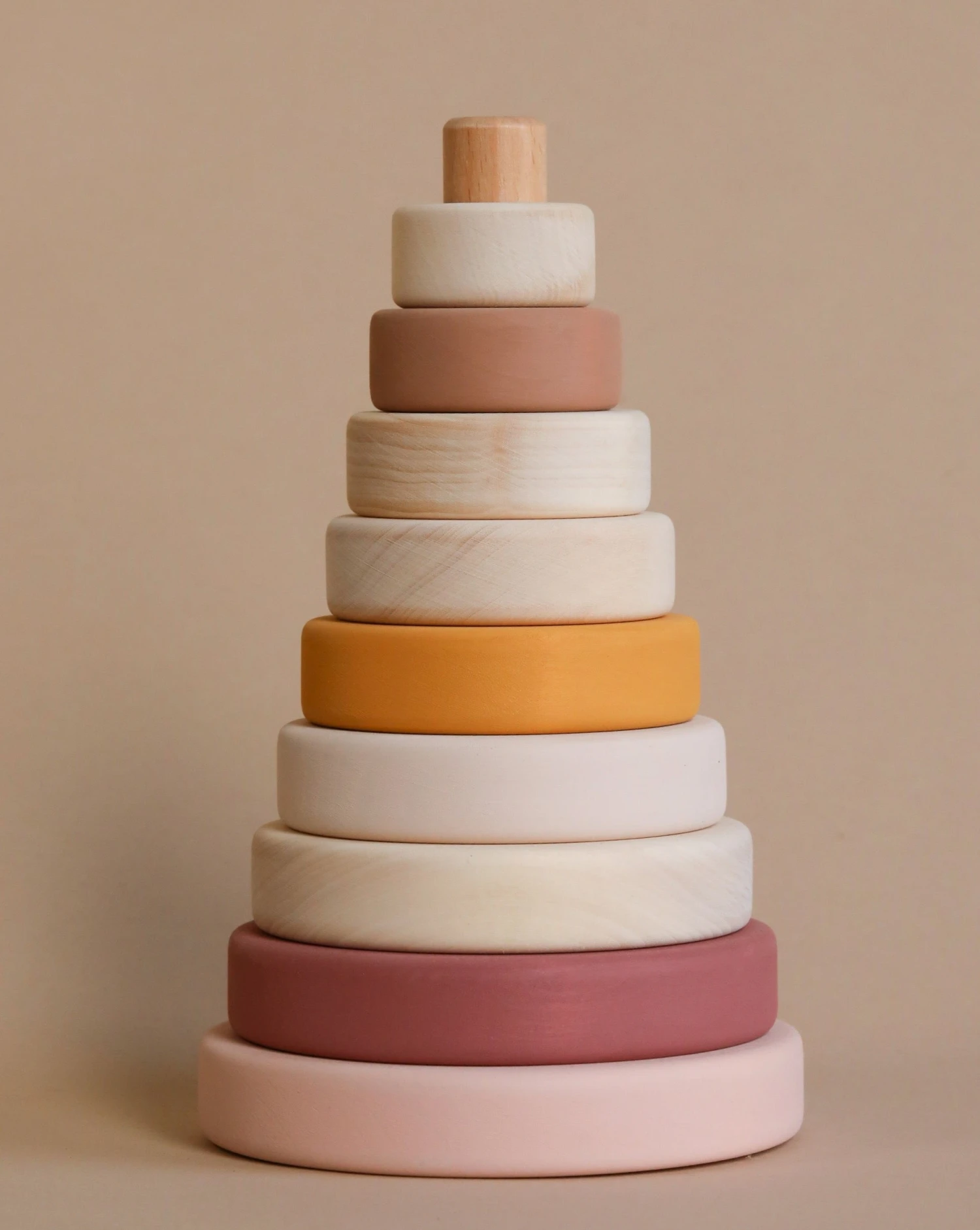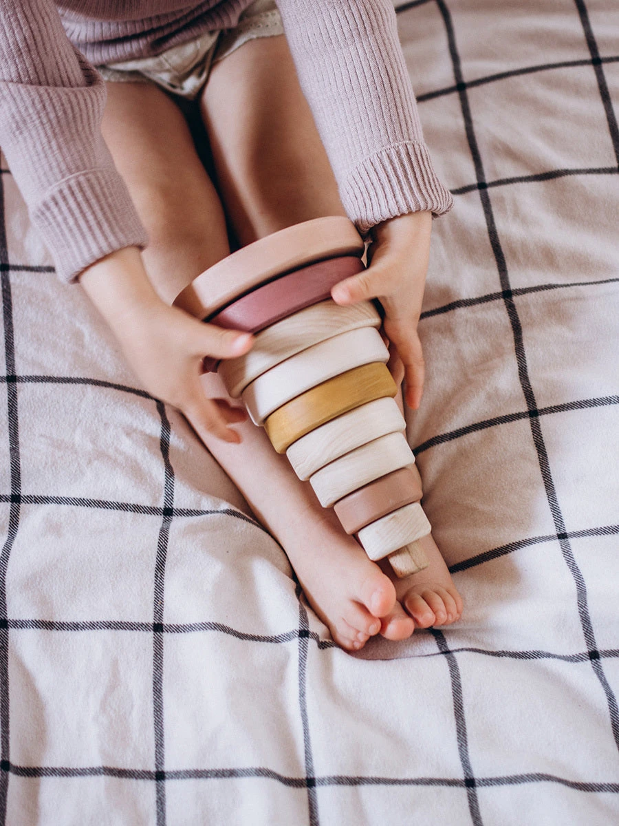 Handmade by Sabo Concept in Ukraine and painted with non-toxic, water-based paint. This stacking toy is great for hand-eye coordination.