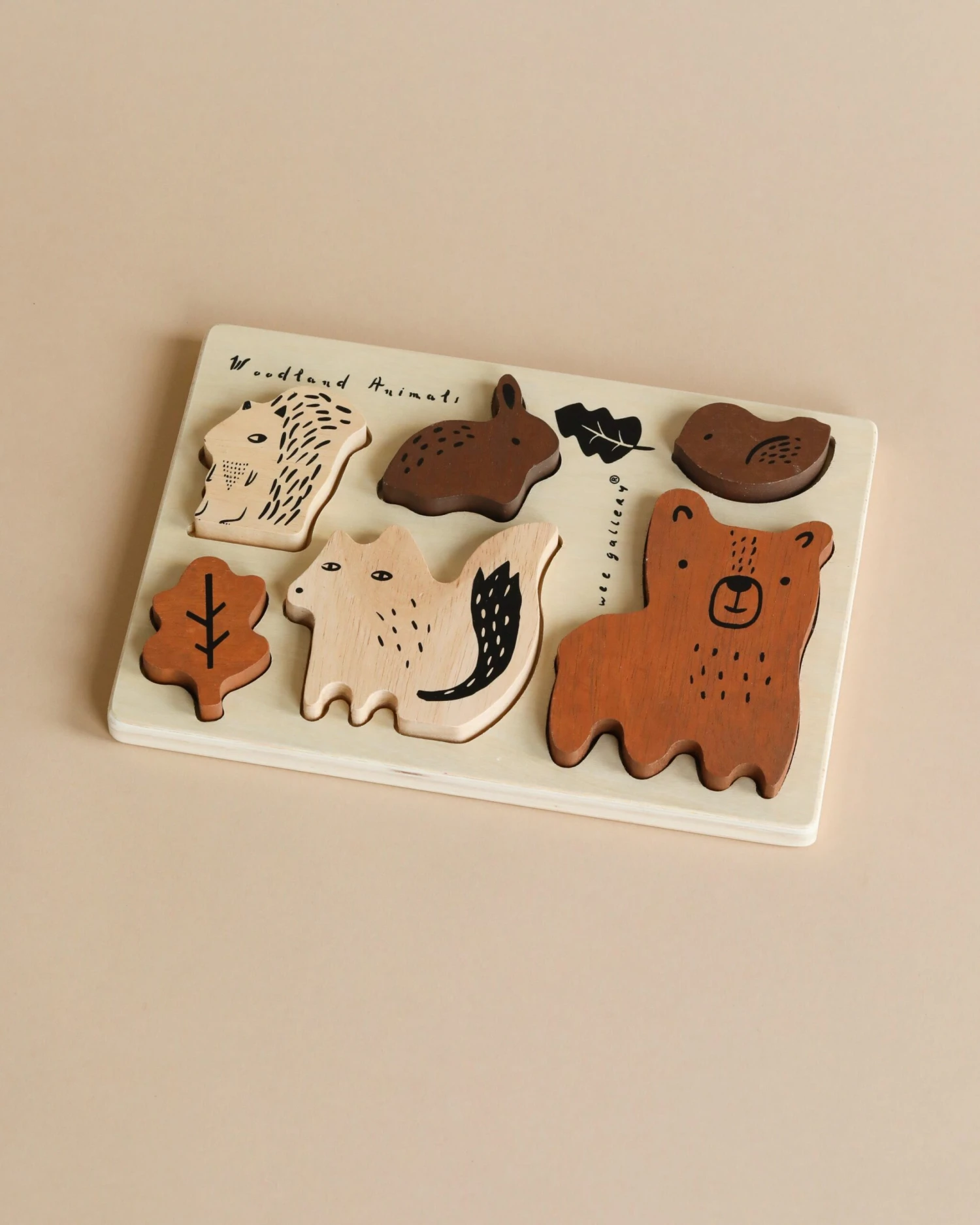 This beautiful six piece Wooden Puzzle is perfect for so many kinds of play! Solving the tray puzzle is just the beginning. You can also use the adorable wooden animals as play time characters in this themed Woodland set. For more educational fun, teach your child to recognize and find each creature in the artwork on the back of each puzzle tray.